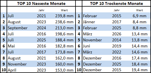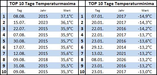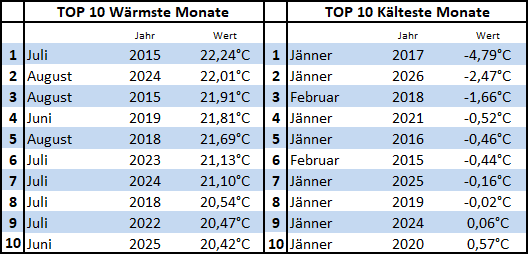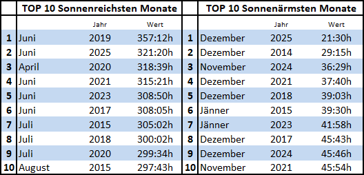 TOP Monate Höchst und Tiefstwerte